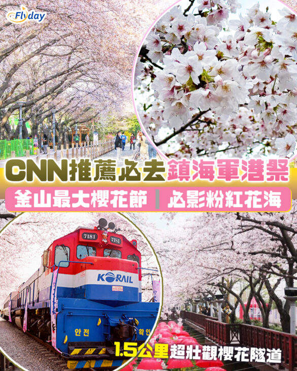 提到釜山賞櫻,絕對不能錯過被 CNN 評為「韓國必去景點」之一的世界最大櫻花節——「鎮海軍港祭」!2026年的鎮海軍港祭於3月27日至4月5日盛大舉行。整個鎮海化身為粉紅色的夢幻花海,無論是慶和火車站的絕美櫻花隧道,還是余佐川長達 1.5 公里的日夜櫻花道,都十分壯觀,每年都吸引無數旅客專程朝聖!文章為大家整合2026鎮海軍港祭的必去打卡位、活動亮點及詳細交通方法。