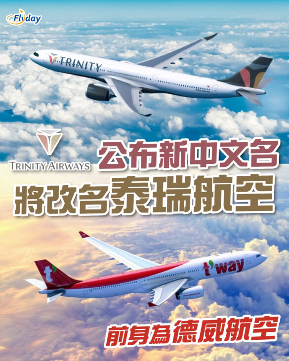 德威航空|三一航空|Trinity Airways|韓國廉航德威航空 T’way Airlines ,被大明索諾集團收購後,集團為整合旗下航空及酒店業務,近日宣布將由今年起改名為「 Trinity Airways」!新名稱“Trinity” 源自拉丁語“Trinitas”,有著“三合一、完整性”的意思,最近亦公布中文名「泰瑞航空」。除了推出新名外,更會陸續更改飛機機身塗裝。而航班編號就不變,繼續用返 TW,目前等待韓國及海外機構批準,之後就會正式完全改用新名!
