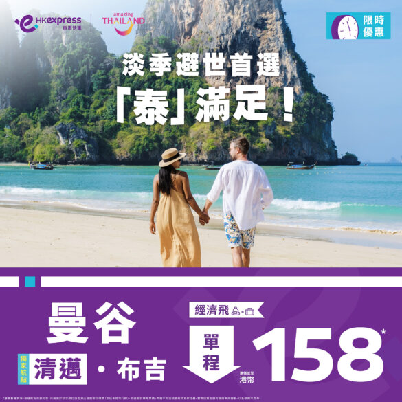 HK Express優惠|HK Express優惠機票|HK Express泰國優惠|HK Express突發推出泰國優惠!單程飛曼谷、清邁、布吉單程$128 起 (連稅計$1,413 起),出發日期由4月13日至6月30日!用Flyday 獨家優惠碼,最高減$130!折後來回連稅$1,338 起,包20kg連稅$1,567 起!有興趣快閃遊泰可以睇睇!另外想搵曼谷線平飛,仲有埃塞俄比亞航空、港航同聯合航空。