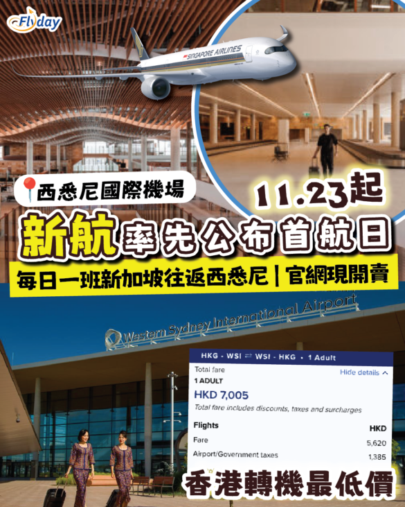 澳洲新機場|悉尼第二機場|西悉尼國際機場|澳洲將在今年11月啟用西悉尼國際機場 (Western Sydney International Airport, 代碼 WSI),是澳洲睽違50年新建的大型新機場,位於 Badgerys Creek (柏斯利溪)。作為悉尼第二機場,啟用後預計將24小時營運,並成為澳洲航空及紐西蘭航空等航空公司的駐站點,而新加坡航空亦率先公布首航日期,11月23日將每日提供一班新加坡直飛西悉尼航班。希望會分擔現有悉尼機場的龐大客貨流量,更有望躋身成為南半球的重要航空樞紐。