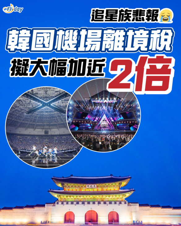 韓國離境稅|韓國自由行|韓國追星|出年去韓國,特別係追星一族族買韓國機票嘅成本又要增加喇!韓國政府企劃預算處最新宣布,計劃將離境稅由現時7千韓圜(約港幣 $36)大幅上調至2萬韓圜(約港幣 $115),加幅接近兩倍!韓國離境稅新收費預計將納入2027年預算案,最快明年起正式實施。