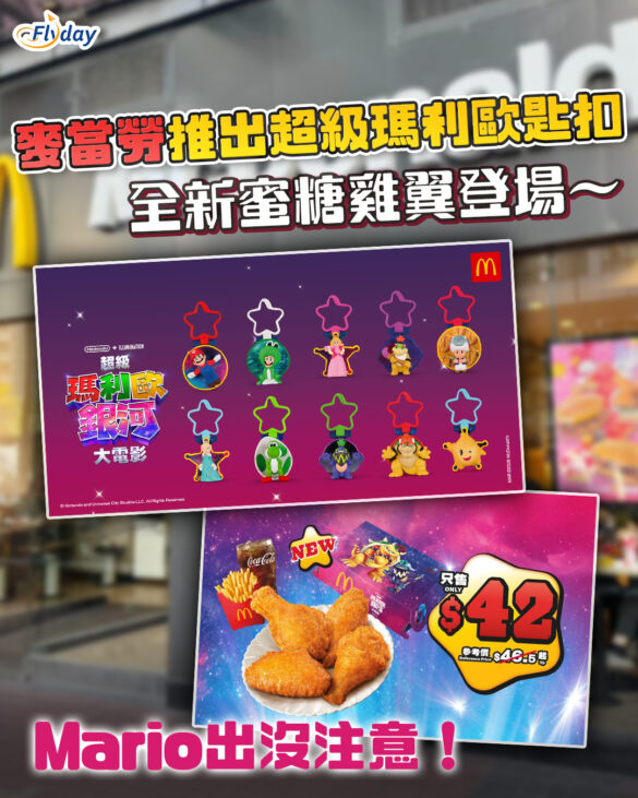 香港麥當勞菜單|各位瑪利歐粉絲注意!隨著《超級瑪利歐銀河大電影》即將上映,一班深受歡迎的經典角色將於3月27日率先登陸香港麥當勞!今次開心樂園餐將輪流推出10款極具收藏價值的角色匙扣玩具及主題圖書,同場更加映期間限定的「瑪利歐主題派對」。除了精美玩具,麥當勞更同步推出全新口味「蜜糖雞翼」,App會員可享專屬優先試食價及限時積分換購優惠!